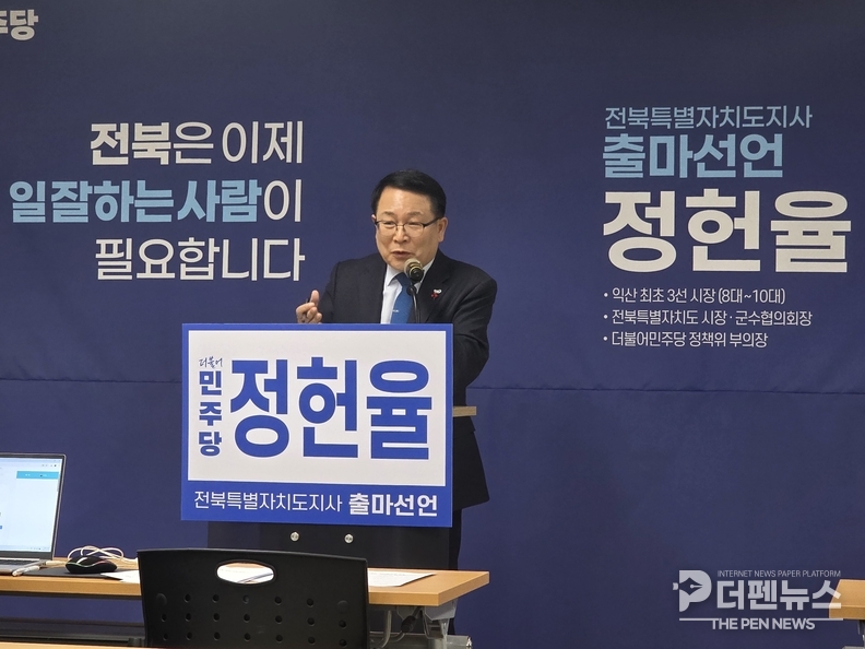 정헌율 익산시장이 전북도지사 출마를 공식 선언하며 “정치적 계산에 멈춰 선 전북을 행정의 힘으로 다시 움직이겠다”고 밝혔다. 정 시장은 전북의 지난 5년을 ‘되는 일 없는 시간’으로 규정하며, 기존 정치 방식과의 단절과 도정의 근본적 전환을 강조했다.