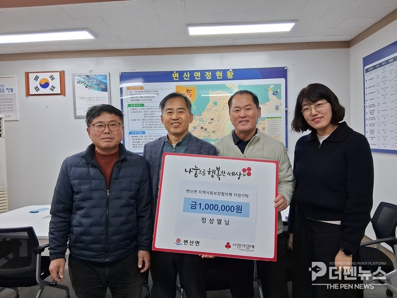 양정우 변산면장은 “매년 변함없이 이웃사랑을 실천해 주시는 정상열 이장께 깊이 감사드린다”며 “기탁된 성금이 꼭 필요한 곳에 전달될 수 있도록 맞춤형 복지 지원에 최선을 다하겠다”고 밝혔다.