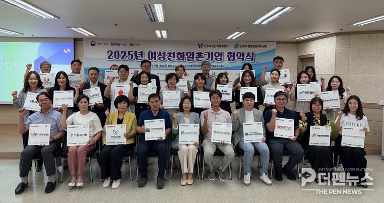 전주시는 18일 전주여성새로일하기센터 민들레홀에서 미르피아여성병원, ㈜한실어패럴, (유)비타민G&P 등 지역 기업 31곳과 ‘2025년 전주시 여성친화 일촌기업 협약식’을 열고, 여성이 일하기 좋은 일터 조성에 공동 협력할 것을 약속했다.