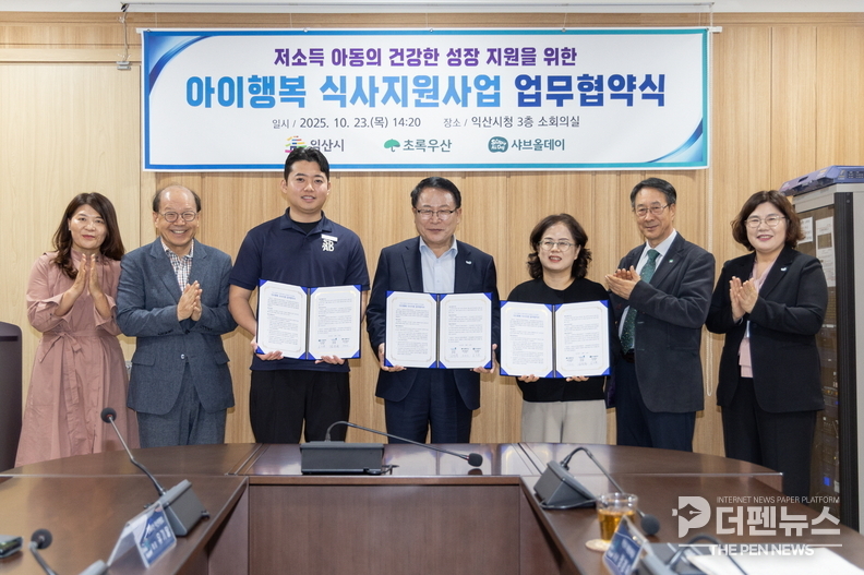 익산시가 민관 협력을 통해 저소득 가정 아동에게 따뜻한 외식의 기회를 제공한다. 시는 23일 초록우산 어린이재단 전북지역본부(본부장 구미희), 샤브올데이 익산신동점(점주 김수환)과 함께 ‘아이행복 식사지원’ 사업 추진을 위한 업무협약을 체결했다고 밝혔다.