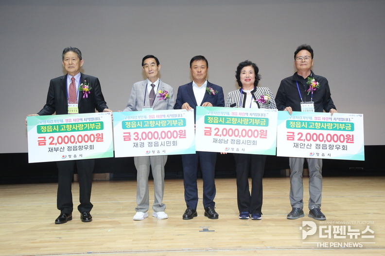 특히 고향사랑을 실천하는 기부 행렬이 이어져 의미를 더했다. 재경 정읍시민회(회장 김호석)가 300만 원, 재부산 정읍향우회(회장 안상균)·재성남 정읍시민회(회장 이복례)·재안산 정읍향우회(회장 조상운)가 각각 200만 원씩, 총 900만 원의 고향사랑기부금을 쾌척했다.