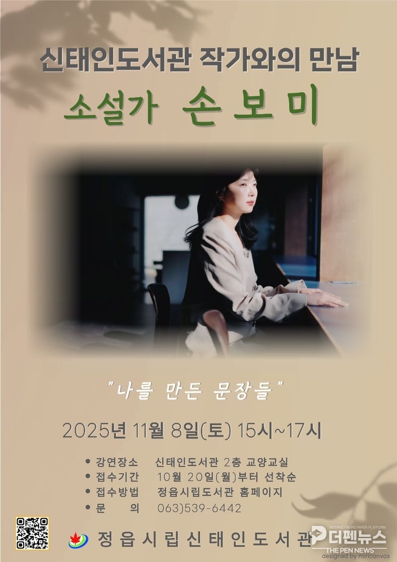 신태인도서관 관계자는 “올해는 손보미 작가를 비롯해 소설가 김숨, 정보라, 정신과 의사 문요한 등 다양한 분야의 저자를 초청했다”며 “이런 만남이 시민들에게 문학적 영감을 주고, 가까운 도서관이 일상 속 문화공간으로 자리 잡는 계기가 되길 바란다”고 말했다.
