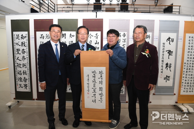 죽봉 임성곤 선생은 ‘완주의 희망은 만경으로부터’라는 문구를 한글 서체로 써 완주의 미래 비전을 담았고, 솔뫼 최송산 선생은 고결한 품격을 상징하는 ‘매화’를 휘호해 전시장에 예술적 깊이를 더했다.