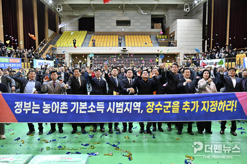 이어 장수군 농업인단체협의회 정상길 회장이 ‘농어촌 기본소득 시범사업 추가 선정을 촉구하는 선언문’을 낭독했다. 최훈식 군수와 최한주 군의장, 박용근 도의원, 김성수 농협중앙회 장수군지부장, 송동훈 이장협의회장 등 주요 인사들이 단상에 올라 선언 취지에 뜻을 함께했다.
