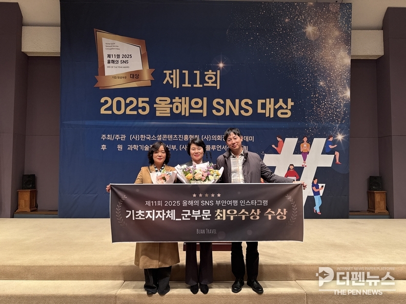 부안군은 (사)한국소셜콘텐츠진흥협회가 주최하고 과학기술정보통신부 및 (산)한국인플루언서산업협회가 후원하는 제11회 2025 올해의 SNS 대상에서 인스타그램 부문 최우수상을 수상했다고 밝혔다.