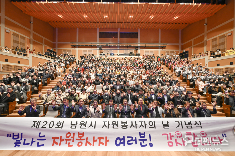 남원시는 지난 26일 청아원에서 ‘제20회 남원시 자원봉사자의 날 기념식’을 열고 한 해 동안 지역 곳곳에서 봉사활동을 펼쳐온 자원봉사자들의 노고를 격려했다. 행사에는 약 300여 명의 자원봉사자들이 참석해 서로의 활동을 돌아보고, 다가오는 ‘세계 자원봉사자의 날’(12월 5일)을 앞두고 감사의 마음을 나누는 시간을 가졌다.