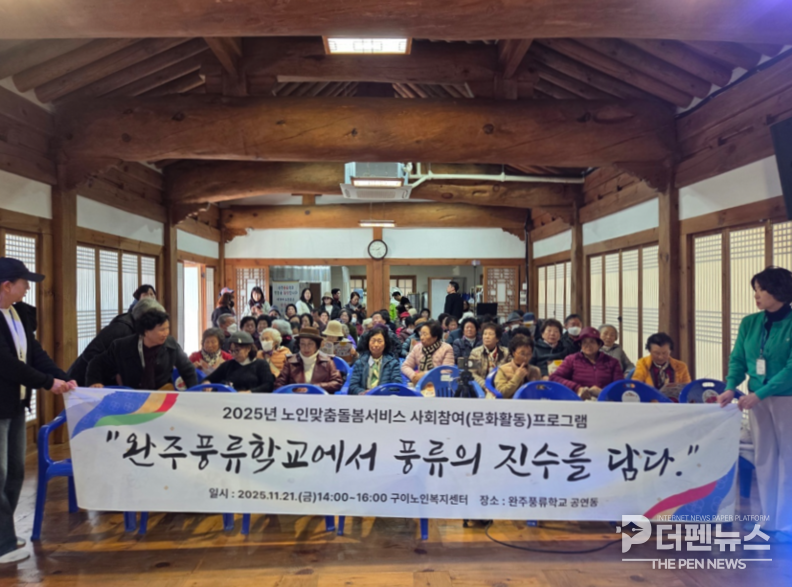 완주군 구이노인복지센터가 최근 완주풍류학교에서 노인맞춤돌봄서비스 이용자 중 사회참여 기회가 적은 어르신 60여 명을 대상으로 국악 공연 관람 행사를 진행했다.