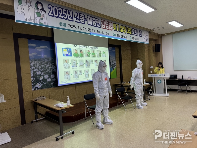정읍시보건소가 고병원성 조류인플루엔자(AI) 발생 가능성에 대비해 방역 대응 태세를 강화하고 나섰다. 보건소는 지난 27일 직원들을 대상으로 ‘2025년 신종·재출현 감염병 위기 발생 대응 모의훈련’을 진행하며 실제 상황에 준하는 현장 대응 역량을 끌어올리는 데 주력했다.