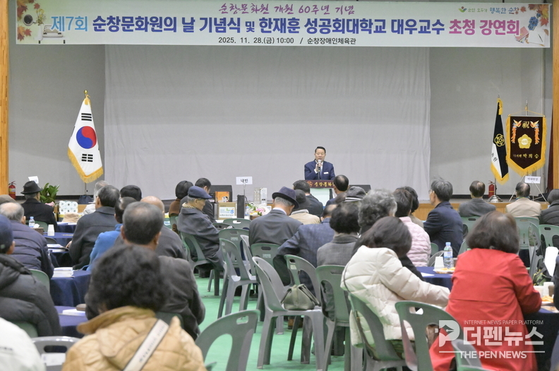 행사는 식전공연으로 시작해 초청 강연, 기념식, 오찬 순으로 이어졌으며 군민과 문화단체, 지역 문화계 인사 등 100여 명이 참석해 순창문화의 현재와 미래를 함께 돌아보는 시간을 가졌다. 특히 성공회대학교 한재훈 대우교수가 ‘예, 지금도 필요할까?’를 주제로 진행한 강연은 큰 호응을 얻으며 행사 분위기를 돋웠다.