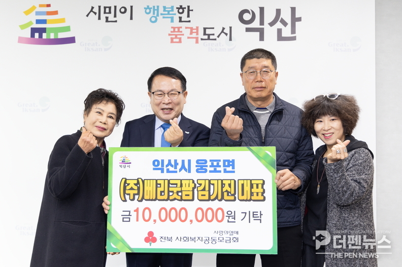 정헌율 익산시장은 “김 대표님의 지속적인 나눔은 단순한 기부를 넘어 지역 복지의 든든한 버팀목이 되고 있다”며 “이웃을 생각하는 따뜻한 마음이 웅포면뿐 아니라 익산시 전체에 큰 울림을 주고 있다”고 말했다.