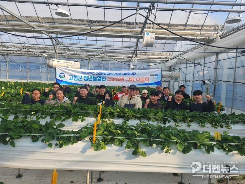 고창군이 지난 1일 신림면 딸기농장 스마트팜 부지에서 청년농업인 스마트팜 교육 수료식을 열었다. 이날 행사에는 김영재 수료생을 포함한 20여 명의 교육생이 참석했다.