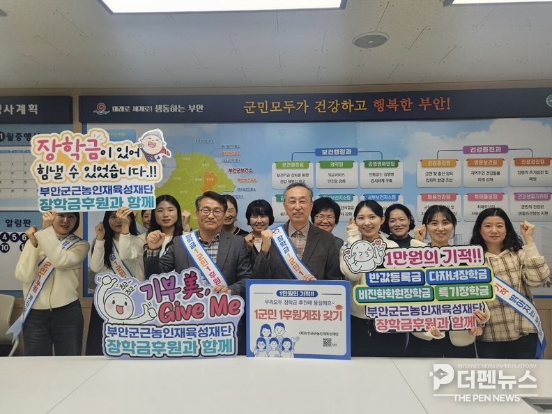부안군근농인재육성재단 관계자는 “보건소 직원들의 자발적인 캠페인 참여와 장학기금 후원 홍보에 감사드린다”며 “군민 참여형 기부문화 확산과 지역 인재 양성을 위해 최선을 다하겠다”고 밝혔다.