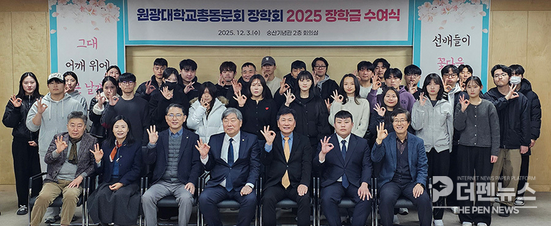 원광대학교 총동문회가 오랜 내홍을 마무리하고 장학사업 정상화를 알렸다. (재)원광대학교총동문회장학회(이사장 김지형)는 3일 원광대 숭산기념관에서 장학금 수여식을 열고, 재학생 50명에게 1인당 100만원씩 총 5,000만원의 장학금을 전달했다. 이번 장학금에는 내년 통합을 앞둔 원광보건대학교 재학생 5명도 처음 포함돼 통합대학 체제의 첫 신호탄이라는 평가가 나온다.