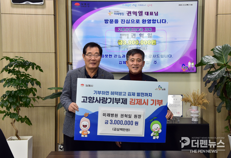 미래병원 권혁일 원장과 하이스트 임병완 대표가 올해도 김제시에 고향사랑기부금을 기탁하며 지역사랑을 실천했다.