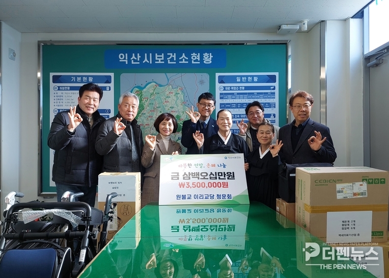 익산 지역 취약계층을 위한 따뜻한 손길이 이어지고 있다. 익산시는 4일 원불교 이리교당 청운회(회장 한갑훈·법명 인보)가 총 350만 원 상당의 의료용품 및 생필품을 시 보건소에 기탁했다고 밝혔다.