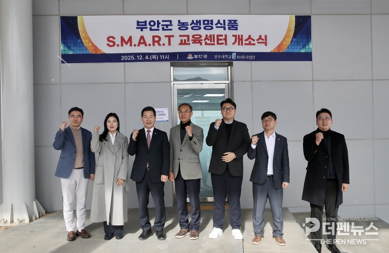 부안군(군수 권익현)이 지역 농식품 산업의 스마트화를 촉진할 핵심 기반시설인 ‘농생명식품 S.M.A.R.T. 교육센터’를 4일 하서면 백련리 새만금잼버리 경관쉼터에 개소했다.