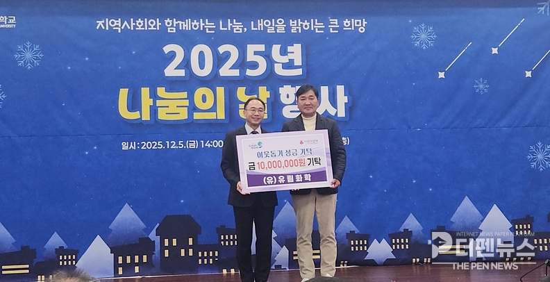 지역 기업 유림화학(대표 김석주)이 복지 사각지대 해소와 저소득 가구 지원을 위해 성금 1,000만 원을 기탁, 현장의 분위기를 더욱 따뜻하게 만들었다. 기탁된 성금은 지역 내 취약계층 지원사업에 사용될 예정이다.
