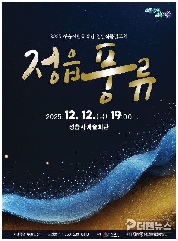 시 관계자는 “정읍시립국악단이 한 해를 마무리하며 시민들에게 그간의 성원에 대한 감사의 마음을 전하고, 수준 높은 국악 공연을 통해 지역민들의 문화예술 향유 기회를 넓히고자 이번 발표회를 정성껏 준비했다”며 “지역 예술단의 저력과 우리 소리의 아름다움을 느낄 수 있는 소중한 시간이 될 것”이라고 전했습니다.