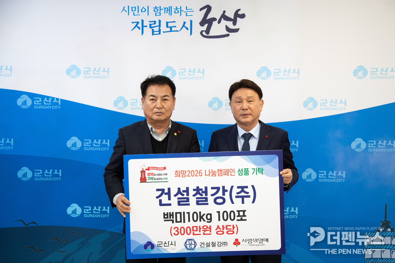 강임준 군산시장은 “건설철강㈜의 따뜻한 나눔이 연말 지역사회에 큰 힘이 되고 있다”며 “희망 2026 나눔 캠페인에 함께해 주신 데 깊이 감사드린다”고 말했다.