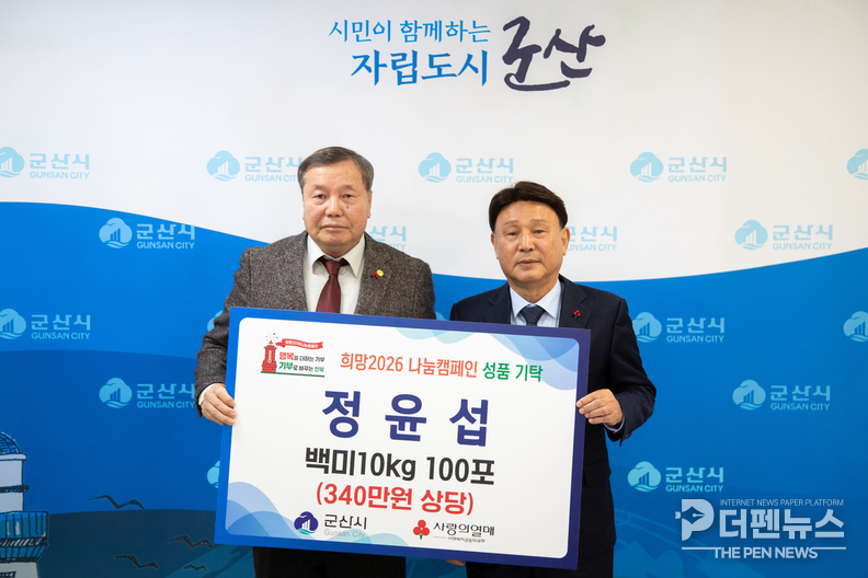 한편 군산시는 ‘행복을 더하는 기부, 기부로 바꾸는 전북’을 슬로건으로 내년 1월 31일까지 ‘희망 2026 나눔 캠페인’을 전개하며 연말연시 어려운 이웃을 위한 모금 활동을 이어가고 있다.