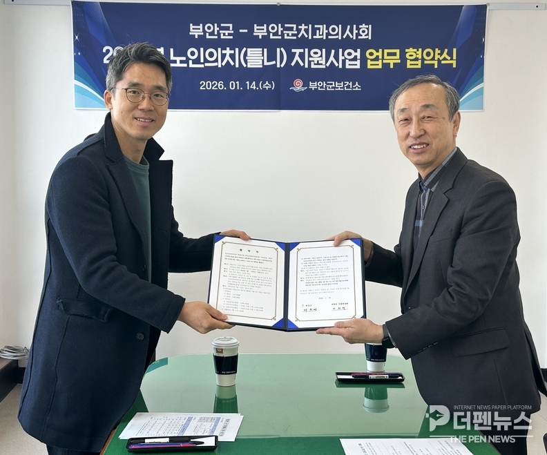 부안군보건소는 14일 부안군치과의사회와 ‘2026년 노인의치(틀니) 사업’ 추진을 위한 업무협약을 체결했다. 이번 협약은 치아 상실로 저작 기능이 떨어지고 영양 불균형을 겪는 취약계층 노인들의 의료 접근성을 높이기 위해 마련됐다.