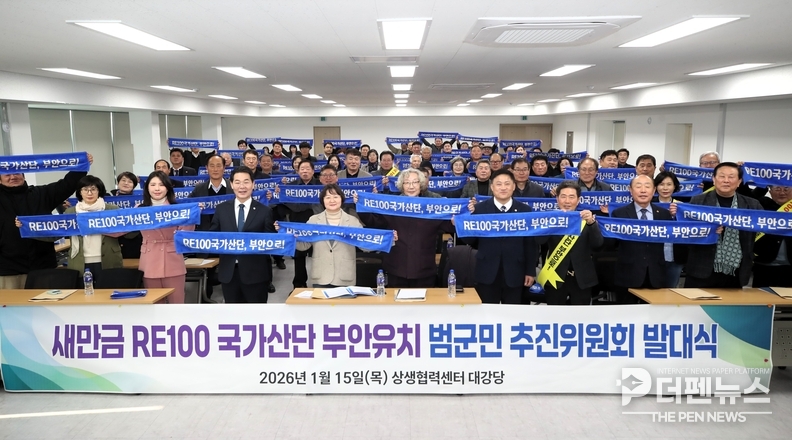 이날 권명식 부안군새마을지회장은 권익현 부안군수와 박병래 부안군의회 의장 등 추진위원 7명에게 위촉장을 전달하며 “RE100 국가산단 유치는 단순한 개발을 넘어 부안의 산업 구조를 바꾸는 전환점”이라고 강조했다. 추진위원 대표로 나선 이명숙 부안군주민자치위원장도 “군민의 뜻을 모아 책임 있게 역할을 다하겠다”고 선서했다.