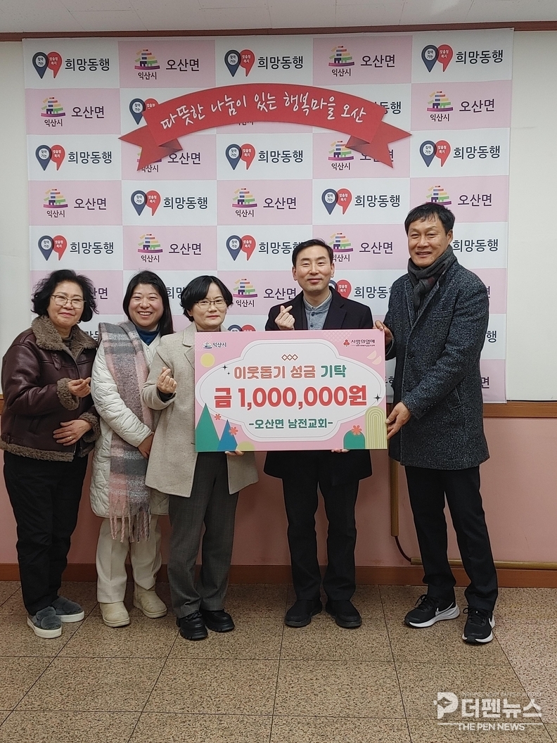 익산시 오산면에 이웃을 향한 따뜻한 손길이 이어지고 있다. 종교단체와 지역 상인들이 나란히 성금을 기탁하며 겨울철 나눔의 온기를 보탰다.