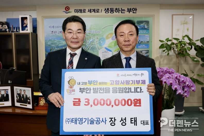 장성태 회장은 ㈜태영기술공사를 운영하며 지역을 기반으로 한 기술 활동을 이어오고 있는 엔지니어로, 부안군을 비롯해 전북 도내 여러 시·군에 고향사랑기부를 꾸준히 실천해 오고 있다. 특정 지역에 한정하지 않고 전북 전반의 균형 발전과 연대를 응원한다는 취지에서 지속적으로 참여해 왔다는 점에서 의미를 더하고 있다.