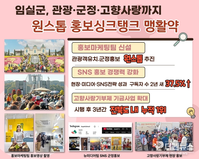 뉴미디어 홍보 경쟁력도 압도적이다. 공식 유튜브 채널 ‘임실엔TV’를 중심으로 콘텐츠를 전면 개편한 결과, 4개 SNS 채널 총 구독자 수가 5만 2,400여 명으로 2024년 대비 37.5%나 급증했다.