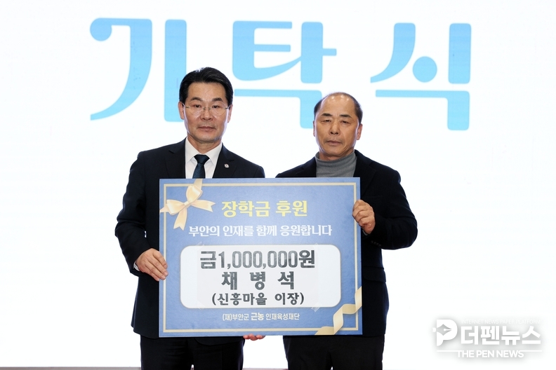 부안군은 행안면 신흥마을 채병석 이장이 지난 28일 행안다목적체육센터에서 열린 ‘2026 군민과의 희망소통대화’ 행사에서 근농인재육성장학금 100만 원을 부안군근농인재육성재단에 기탁했다고 밝혔다.