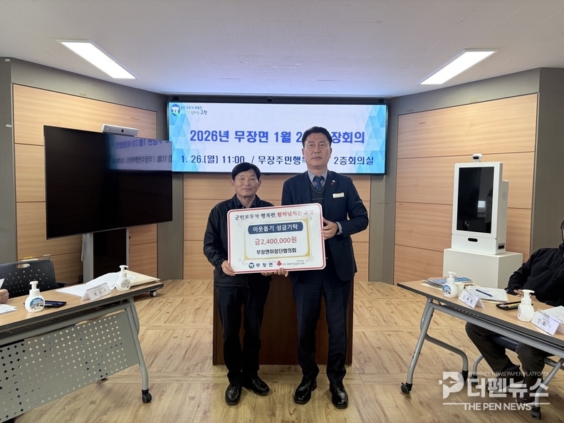 강필구 무장면장은 “어려운 이웃을 먼저 생각해 주신 이장단협의회에 깊이 감사드린다”며 “기탁된 성금이 관내 취약계층에게 실질적인 도움이 될 수 있도록 소중히 사용하겠다”고 밝혔다.
