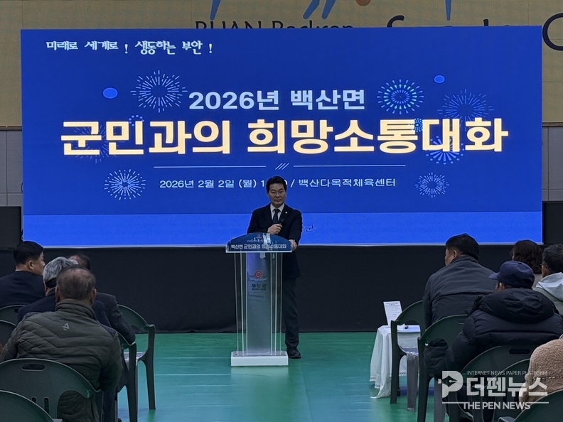 부안군은 지난 2일 백산면 다목적체육센터에서 ‘2026년 결실창래(結實蒼來), 군민과의 희망소통대화’를 개최했다고 밝혔다. 동학농민혁명의 발상지인 백산면에서 열린 이날 행사에는 주민 200여명이 참석해 성황을 이뤘다.