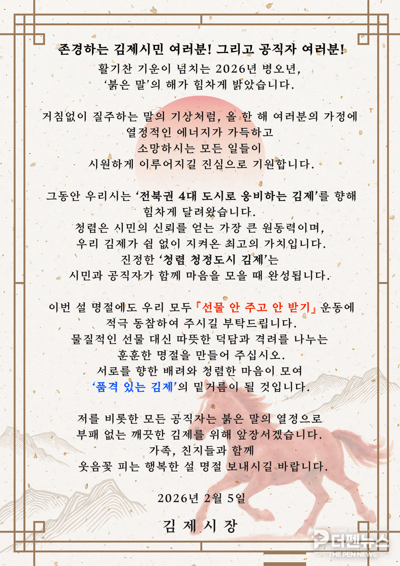 김제시가 설 명절을 앞두고 공직사회 전반의 청렴 의식을 강화하기 위해 올해 제1호 ‘청렴주의보’를 발령했다.