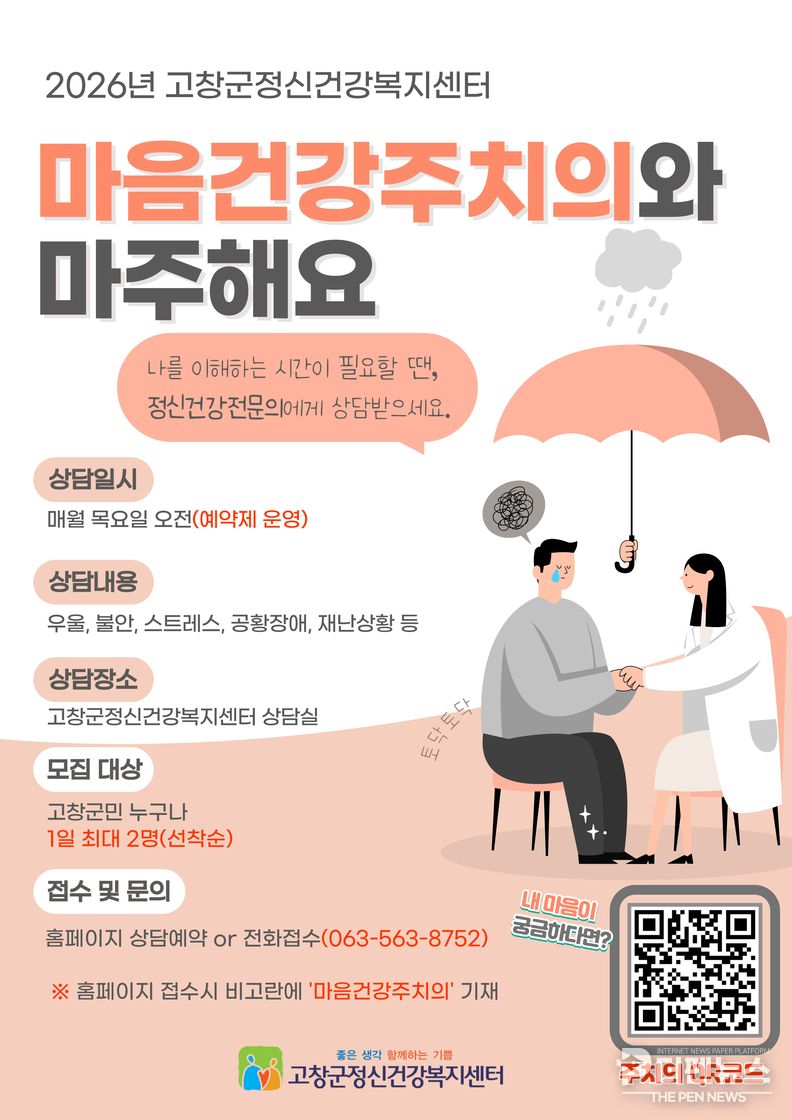 고창군정신건강복지센터가 지역주민의 정신건강 증진을 위해 2026년 ‘마음건강주치의’ 사업을 운영하고 있다.