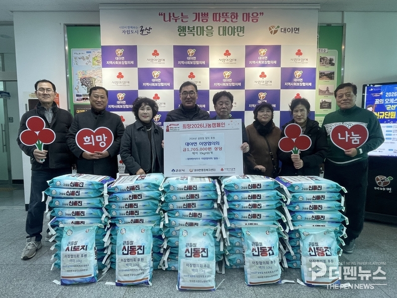이유청 대야면장은 “지역사회 나눔 실천에 감사드린다”며 “주민 모두가 온기를 느낄 수 있는 공동체 분위기 조성에 힘쓰겠다”고 말했다.