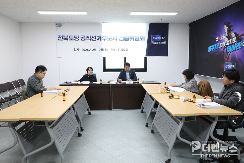 조국혁신당은 12일 조국혁신당 전북도당에서 ‘2026 지방선거 및 국회의원 재·보궐선거 예비후보자 검증위원회’ 심사를 진행했다고 밝혔다.