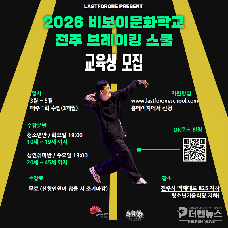 전주시 관계자는 “오는 5월 비보이그랑프리 개최를 앞두고 브레이킹 문화 저변 확대와 인재 양성을 위한 지원을 이어가겠다”고 밝혔다.