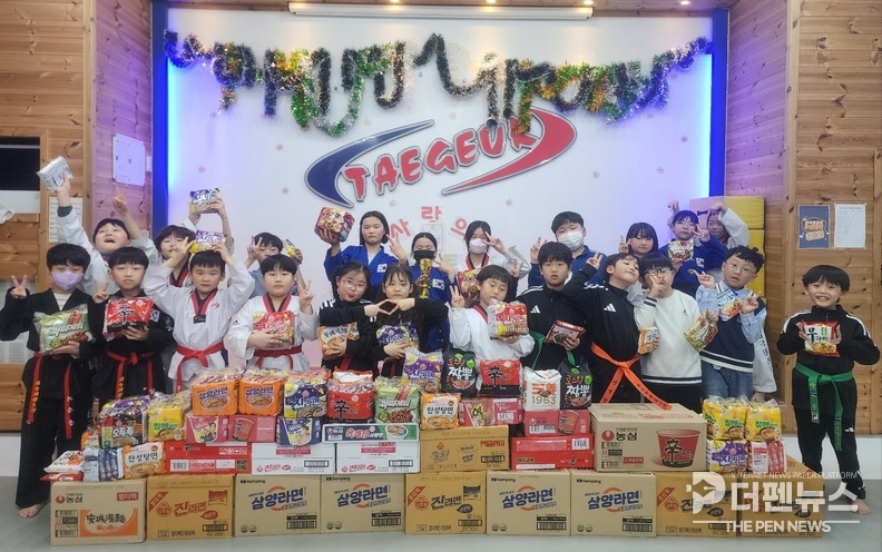 익산 지역 태권도장이 원생들과 함께 마련한 라면을 취약계층에 전달했다.