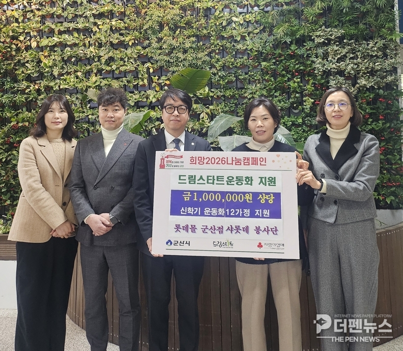 드림스타트는 24일 롯데몰 군산점에서 샤롯데봉사단과 함께 ‘신학기 운동화 지원사업’ 기탁식을 열었다고 밝혔다. 이번 행사는 신학기를 맞아 학용품과 의류 준비에 어려움을 겪는 사례관리 대상 아동을 지원하기 위해 마련됐다.