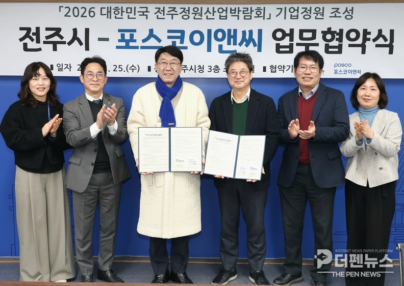 이번 협약은 오는 5월 개최 예정인 전주정원산업박람회와 연계해 추진된다. 전주시는 덕진공원 내 정원 조성 부지를 제공하고, 포스코이앤씨는 약 1억 원을 투입해 기업동행정원 조성을 맡는다.