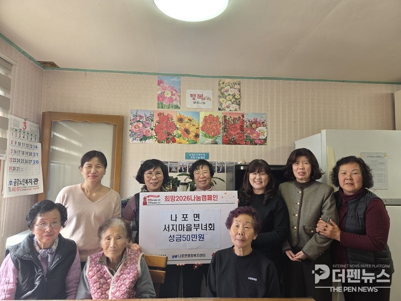 나포면 행정복지센터는 서지마을 부녀회(회장 김정애)가 심장병 어린이 치료비 지원을 위해 성금 50만원을 기탁했다고 밝혔다. 지난해에 이어 이어진 나눔으로, 주민 주도의 수익을 지역사회에 환원했다는 점에서 의미를 더했다.