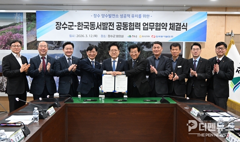 장수군은 12일 군청 회의실에서 장수군의회, 한국동서발전㈜과 ‘장수 양수발전 사업 성공적 유치를 위한 공동협력 업무협약(MOU)’을 체결했다고 밝혔다.