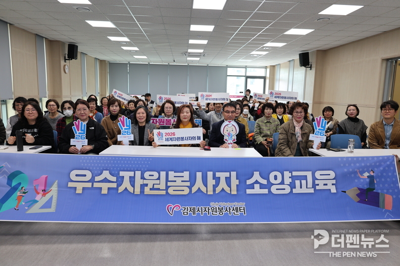 김제시는 김제시자원봉사센터가 지난 24일 센터 2층 대회의실에서 우수 자원봉사자 120여 명을 대상으로 ‘2026 우수자원봉사자 소양교육’을 진행했다고 밝혔다.