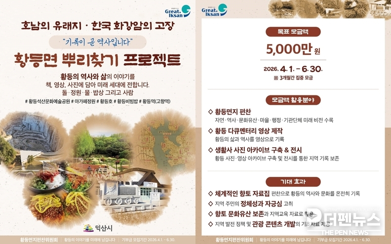 이번 사업은 6월 30일까지 약 3개월간 5000만 원 모금을 목표로 진행된다. 확보된 재원은 황등면지 편찬, 다큐멘터리 영상 제작, 생활사 사진 아카이브 구축과 전시 등에 투입될 예정이다. 단순 기록을 넘어 지역의 기억을 시각화하고, 이를 공유 가능한 콘텐츠로 확장하는 데 초점이 맞춰져 있다.