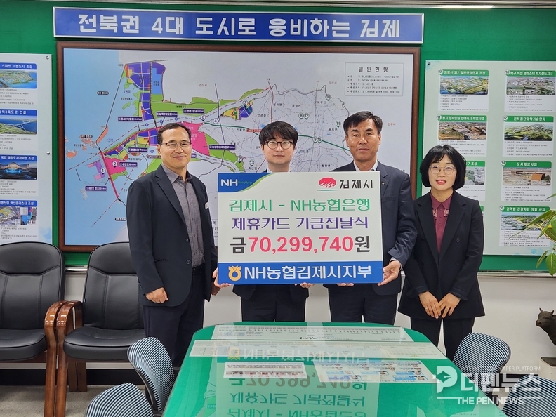 전북 김제시는 NH농협은행 김제시지부로부터 ‘2025년도 제휴카드 적립기금’ 7,029만 원을 전달받았다고 밝혔다.