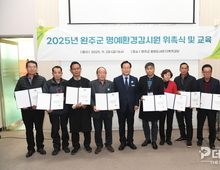 완주군이 증가하는 환경 민원과 도시화로 인한 오염 예방을 위해 28일 ‘명예환경감시원 위촉식 및 교육’을 개최하며 지역 환경 대응 체계를 강화했다. 완주군청 중앙도서관 3층 다목적강당에서 열린 이날 행사에는 명예환경감시원과 환경위생과 직원 70여 명이 참석했다. 위촉식 후에는 전북녹색환경지원센터와 연계한 환경감시 교육이 진행되며, 환경오염 예방과 신속한 민원 대응 능력을 높이는 프로그램으로 운영됐다. 이번에 위촉된 명예환경감시원은 읍·면별 4~5명씩 총 56명으로, 이들은 축사 악취, 대기오염 등 도시화로 발생할 수 있는 환경 문제를 사전 예방하기 위해 감시, 주민 계도, 순찰 활동 등을 담당한다. 이장협의회장, 주민자치위원장, 공동주택 입주자대표 등 지역 리더들이 참여해 책임성과 대표성을 높였다. 완주군은 인구 10만 명을 넘어서며 도시민 유입이 늘고 있는 상황에서 자율적 환경 감시와 신속한 민원 대응의 필요성이 커지고 있다고 설명했다. 유희태 완주군수는 “군민의 삶의 질 향상을 위해 축사 매입, 악취방지시설 설치 등 환경오염 방지에 최선을 다하고 있다”며 “명예환경감시원들이 지역 환경지킴이라는 자부심을 가지고 맡은 역할을 충실히 수행해 달라”고 당부했다.