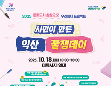 시민이 직접 기획한 다채로운 문화행사가 오는 10월 18일(토) 미륵사지 일원에서 펼쳐진다. 익산시문화도시지원센터가 주관하는 시민참여형 문화 프로젝트 ‘2025 문화도시 삼삼오오’의 일환으로 열리는 이번 행사는, ‘시민이 만든 꿀잼도시 익산’이라는 이름처럼 지역민이 주체가 되어 문화도시의 미래를 실험하는 자리다. 이번 행사는 상반기 시민 공모를 통해 접수된 100개 기획안 중 선정된 21개 팀이 함께 참여해 진행되며, 단 하루 동안 익산의 대표 유적지 미륵사지가 시민 아이디어가 살아 숨 쉬는 ‘꿀잼 공간’으로 탈바꿈한다. 주요 프로그램은 다음과 같다. 익산 100세 시니어 보드게임 대회, 익산가면축제 ‘IKSAN Mask Festival: 백제 타임슬립’, 운세 체험존 ‘익명소(益命所): 운명을 보다’, 독특한 외침 대회 ‘너에게 고함, 나에게 고함 - 익룡 선발대회’, '닭벤져스: 최강의 닭을 찾아서’, 마룡 종이접기 대회, 콘서트풍 돌잔치 ‘IKSAN ROCK FESTIVAL’ 등 이다. 이 밖에도 현장에서는 지역 특산물과 수공예품을 만나볼 수 있는 카부츠마켓이 함께 열려 시민들의 오감을 만족시킬 예정이다. 익산 곳곳에서는 이미 다양한 사전 프로그램도 진
