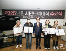 남원시가 시민 도예문화의 산실인 남원시민도예대학 제49기 수료식을 열고 52명의 시민도예가 배출을 공식화했다. 시는 지난 11월 27일 시민도예대학에서 수료식을 열고, 1년 과정의 도예 교육을 마무리한 수강생들과 지역 문화예술 관계자들이 함께 축하하는 자리를 가졌다고 28일 밝혔다. 올해 수료생들은 입문부터 물레, 응용, 창작까지 이어지는 체계적 교육을 거치며 성형·장식기법·유약·소성 등 실기 중심의 과정을 이수했다. 남원시민도예대학은 지난 26년간 약 2,500명의 시민 도예가를 양성하며 지역 도자문화의 중심 기관으로 자리매김해 왔다. 수료식에서는 우수 수강생 시상과 함께 제49기 수강생들의 작품 70여 점을 선보이는 특별전 〈꿈꾸는 시민도예가〉가 개막했다. 전시는 오는 12월 11일까지 시민도예대학 전시실에서 진행된다. 올해의 최고 작품으로는 물레과정 수강생 방호원의 〈꽃들의 노래〉가 선정됐다. 자동차 정비업 종사자인 방 씨는 금속과 도자를 결합한 독창적 조형 방식을 선보였다. 자동차 정비 기술을 응용해 철판과 도자를 용접해 만든 작품은 남원의 정체성을 상징적으로 표현했다는 평가를 받았으며, 구상적 도예의 새로운 가능성을 열었다는 호평을 받았다. 최경식