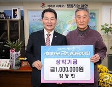 부안군 퇴직공무원 김동한 씨가 지난 18일 지역 인재 육성을 위해 부안군근농인재육성재단에 장학금 100만 원을 기탁했다. 1976년 부안군에 최초 임용된 김 씨는 2008년 정년퇴임할 때까지 32년간 공직에 몸담으며 지역 발전에 헌신했다. 퇴직 직전에는 부안읍 산업팀장으로 근무하며 농산물유통사업 유공으로 2004년 농림부장관상을 수상하는 등 업무 분야에서 탁월한 평가를 받았다. 퇴직 후에는 담산 이병철 선생 문하에서 붓글씨를 배우며 연묵회 활동을 이어오고 있으며, 연묵회는 최근 부안예술회관에서 회원전을 개최하는 등 지역 문화·예술 발전에도 기여하고 있다. 김 씨는 “사랑스러운 손주 3명을 비롯해 부안의 많은 아이들이 꿈을 이루는 데 조금이라도 도움이 되고 싶다”며 “미래세대가 더 큰 세상을 향해 도전하길 바란다”고 말했다. 권익현 부안군근농인재육성재단 이사장은 “오랜 기간 지역 발전에 헌신한 전직 공무원께서 다시 한번 지역 인재를 위해 따뜻한 마음을 보여 주셨다”며 “기탁된 장학금은 학생들의 교육 기회 확대와 복지 향상을 위해 소중히 사용하겠다”고 밝혔다. 한편, 부안군근농인재육성재단은 반값등록금, 다자녀장학금, 특기장학금, 비진학 취업·창업 장학금 등 다양