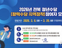 김제시가 지역 청년들의 취업 준비 부담을 덜기 위해 구직활동 지원에 나섰다. 김제시는 미취업 청년의 구직활동을 지원하기 위한 ‘2026년 전북형 청년활력수당’ 참여자 75명을 모집한다고 5일 밝혔다. 전북형 청년활력수당은 취업을 준비하는 청년들에게 구직활동비를 지원해 안정적인 취업 준비 환경을 조성하고 청년의 자립 기반 마련과 사회 진입을 돕기 위해 추진되는 사업이다. 지원 대상은 공고일 기준 김제시에 주민등록을 둔 18세부터 39세까지의 미취업 청년이다. 가구 기준 중위소득 150% 미만이어야 하며 재학생은 신청할 수 없고 최종학력 졸업·중퇴·수료자만 참여 가능하다. 선정된 참여자에게는 월 50만 원씩 6개월간 총 300만 원이 지급된다. 지원금은 지역화폐 50%와 체크카드 연계 포인트 50% 방식으로 지급되며 교재 구입과 자격시험 응시료, 면접 준비 비용 등 구직활동 관련 비용으로 사용할 수 있다. 신청 기간은 6일부터 20일까지이며 전북형 청년활력수당 홈페이지에서 신청서와 관련 서류를 제출하면 된다. 정성주 김제시장은 “청년들이 경제적 부담 없이 취업 준비에 전념할 수 있도록 실질적인 지원을 강화하겠다”며 “앞으로도 청년의 자립과 지역 정착을 위한 정책